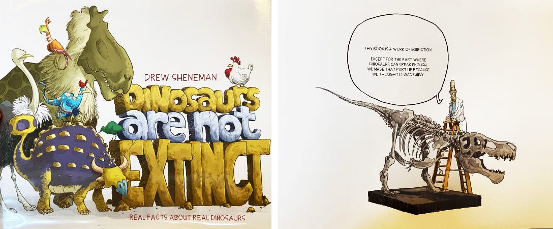 “This book is a work of nonfiction. Except for the part where dinosaurs can speak English. We made that part up because we thought it was funny.”